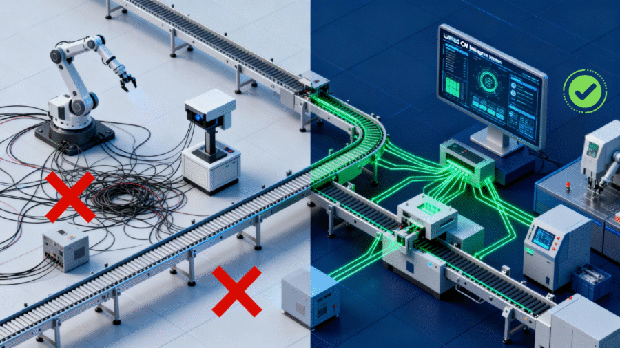 Outcome: management sees “automation everywhere” but OEE stays flat because micro-stoppages and handshakes kill flow.