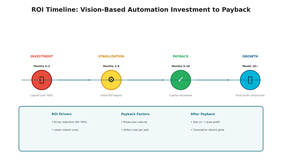 In most production environments, vision systems pay back within 9-18 months, depending on volume, defect cost, and inspection criticality.