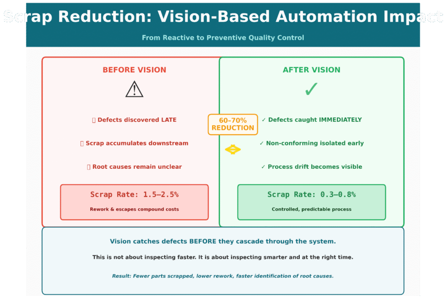 Scrap reduction is one of the strongest ROI drivers for vision-based automation.